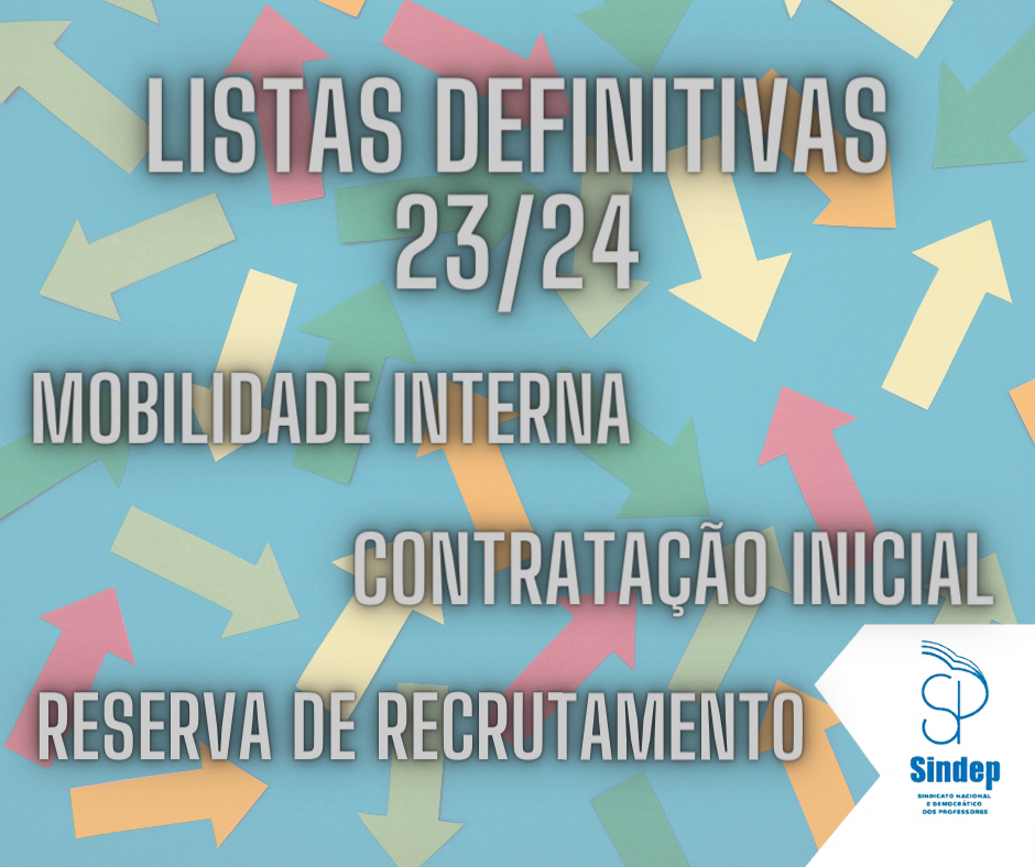 Estão disponíveis para consulta as listas definitivas de ordenação, colocação, não colocação, exclusão e retirados da mobilidade interna para o ano escolar 2023/2024.